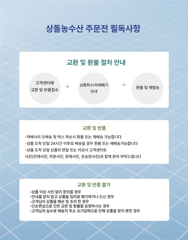 · 상품 불량 사유와 사진을 남겨 주시면 빠른 처리가 가능합니다.